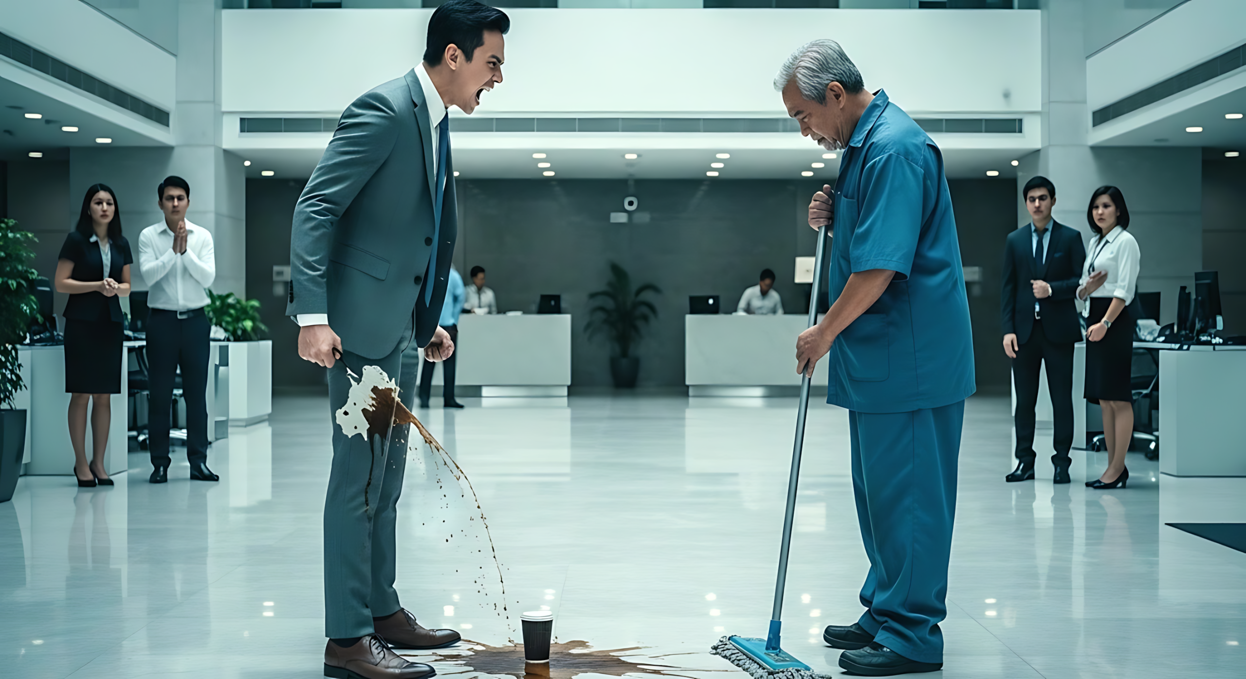 PINALAYAS NG MAYABANG NA EXECUTIVE ANG ISANG HAMAK NA JANITOR… 5 MINUTO ANG MAKALIPAS, DUMATING ANG PRESIDENTE NG KUMPANYA AT YUMUKO SA KANYA SABAY...